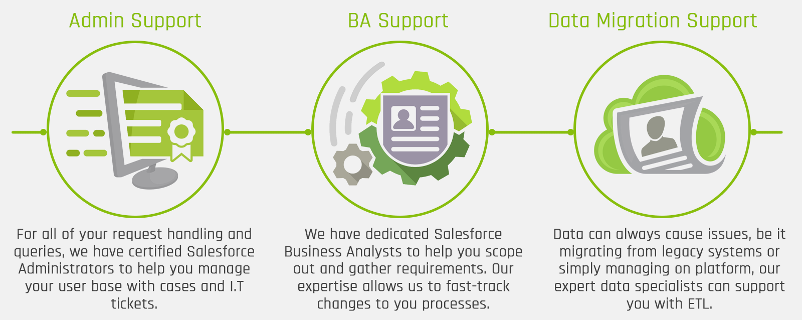 We'll team up with you to keep your Salesforce instance ticking with dedicated support, from request management and ticket handling, to general admin and system maintenance.